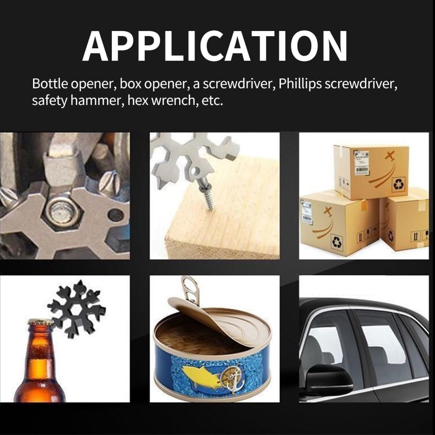 • 18-in-1 Multi-Function Tool – Combines 18 essential tools in one compact design, including screwdrivers, wrenches, bottle opener, box cutter, and keychain hole.