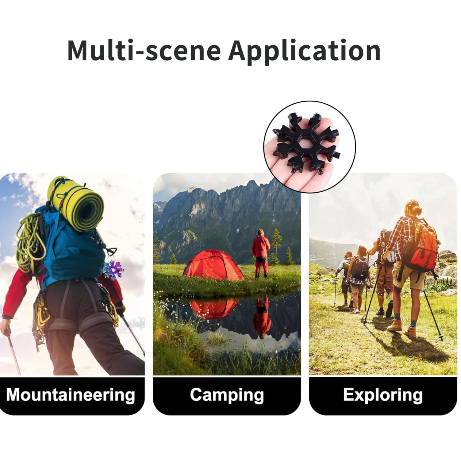 Durable & Portable 18-in-1 Snowflake Multi-Tool | Stainless Steel Pocket Tool with Bottle Opener, Screwdrivers, Allen Wrench & Box Cutter | Compact EDC Utility Tool